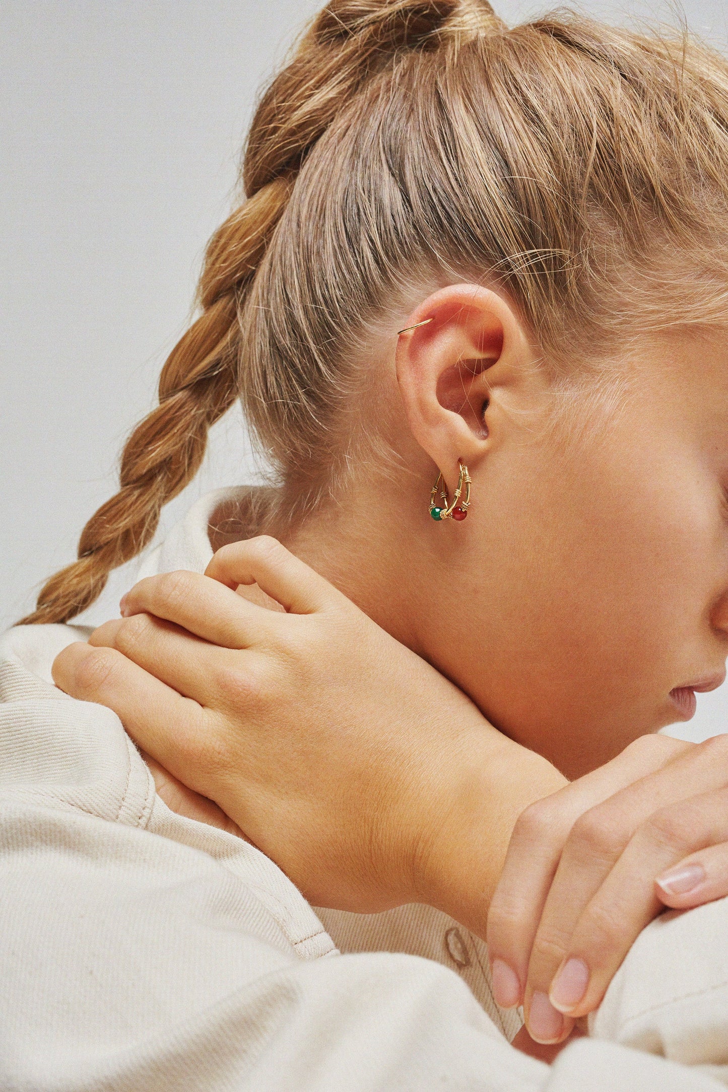 ZINC es un par de pendientes de oro vermeil, engastados con una piedra semipreciosa (ónix verde oscuro).