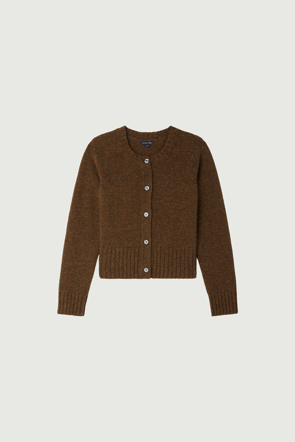 LYNE es un cárdigan de lana mezclada. Los acabados de canalé en el bajo del cuerpo y en las mangas refuerzan su volumen ceñido y ajustado al cuerpo. Una cinta de espiguilla recorre la abotonadura. Está tejido en un punto imprescindible del armario Soeur, con la textura suave (pelo largo de lana de Alpaca).