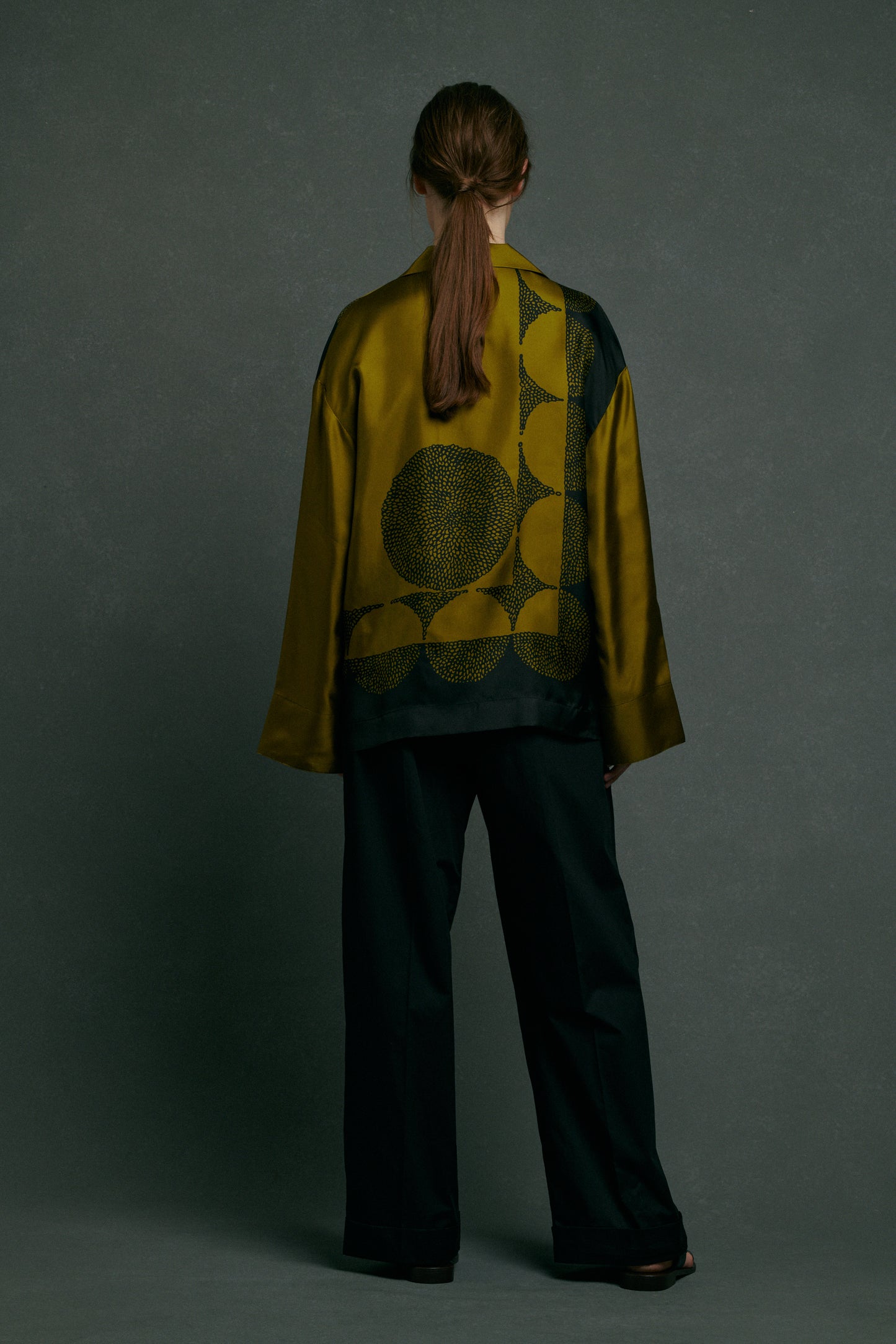 Camisa amplia de sarga de seda estampada «Pochoir»