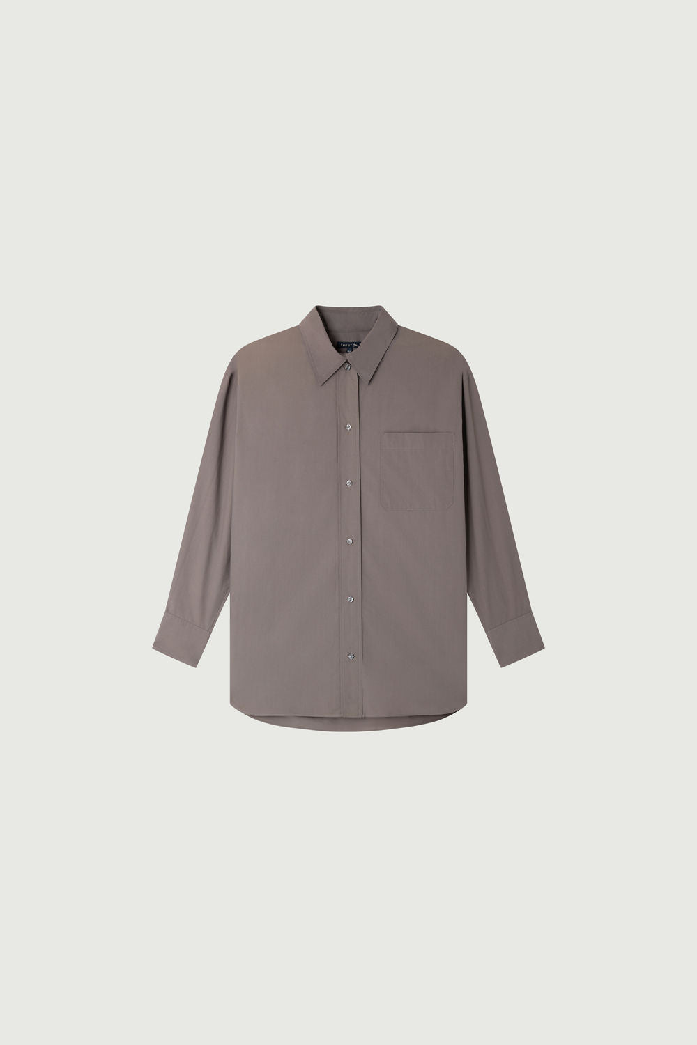 CARLOTTA es una camisa de popelina gris que apuesta por un corte oversize inspirado en el vestuario masculino, para un estilo desenfadado y elegante.