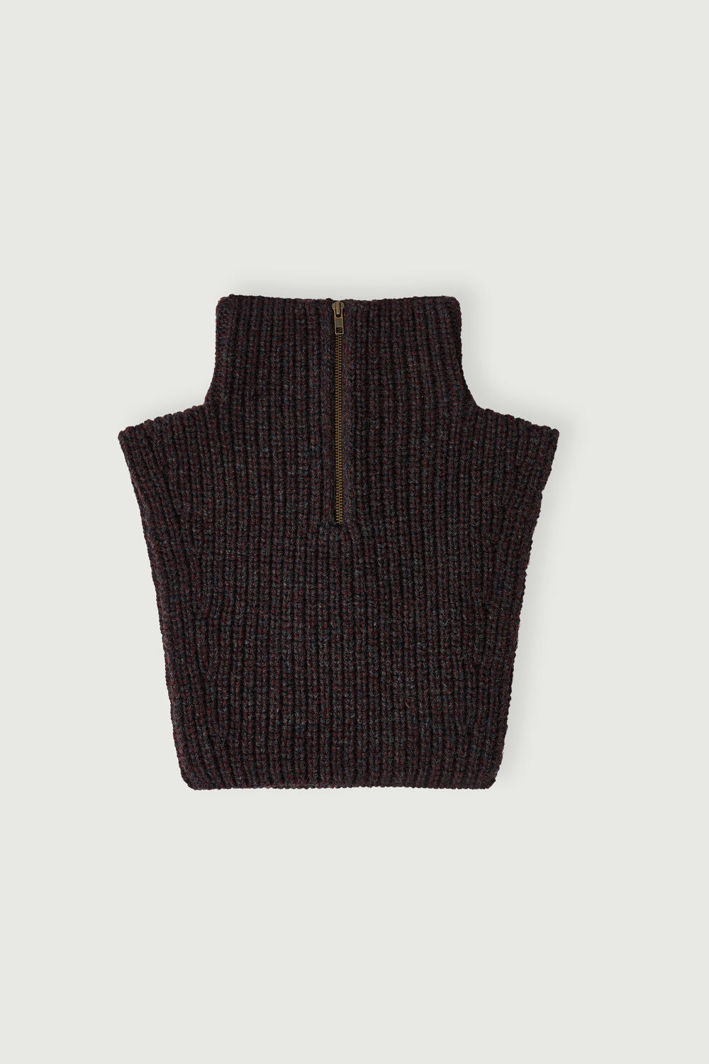 bufanda wool Cuello alto con cremallera de lana gris/burdeos