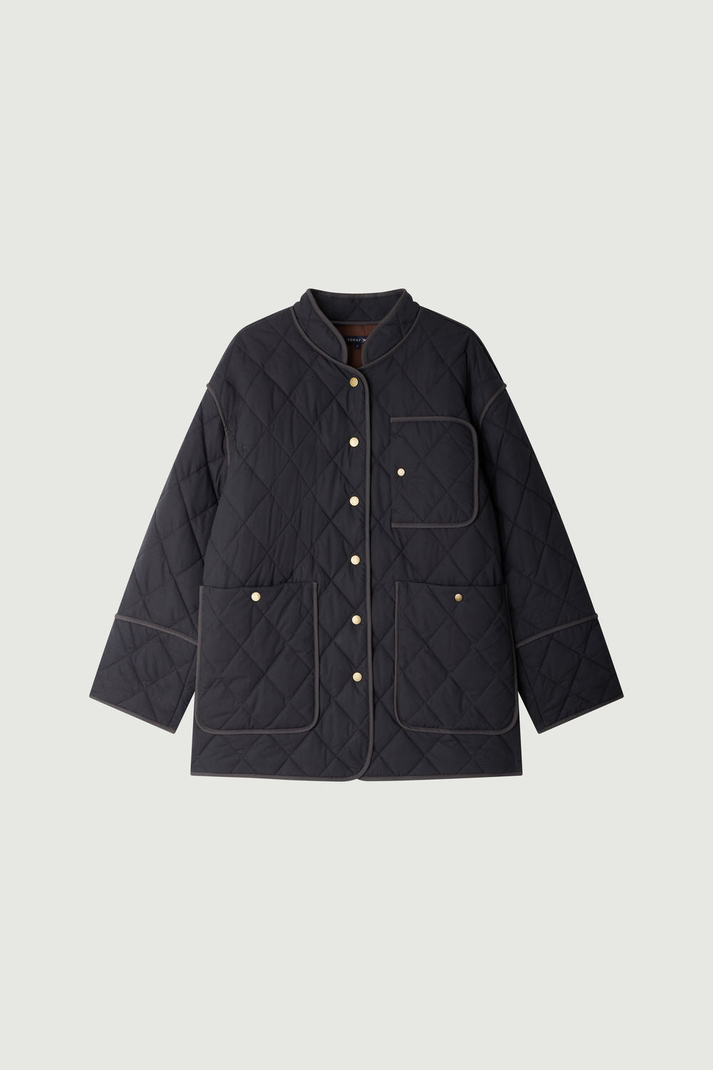 BELFAST es un abrigo corto de algodón emerizado, confeccionado con un acolchado fino en forma de rombos. Se cierra con botones de presión y cuenta con dos bolsillos de parche, un bolsillo en el pecho y un bolsillo interior para una funcionalidad práctica. Su corte está resaltado por un ribete gris antracita.