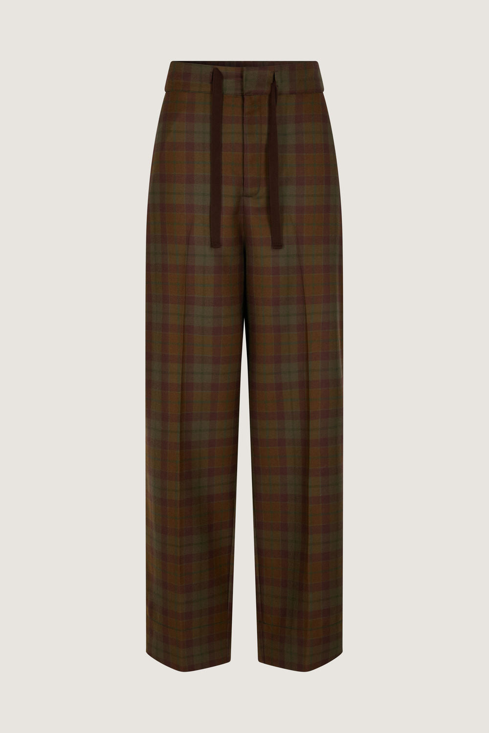 Pantalón de cintura elástica en tejido de lana caqui/marrón