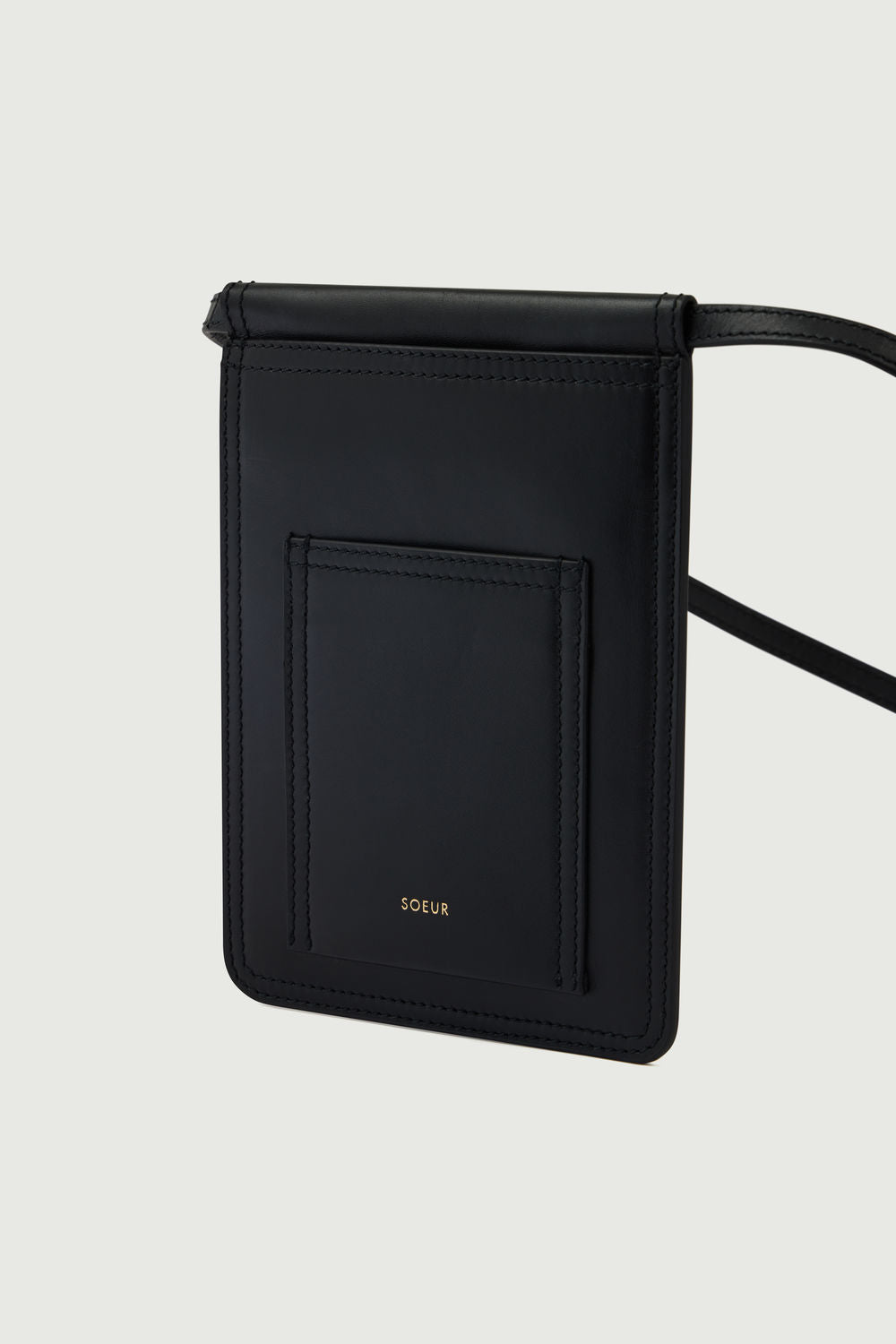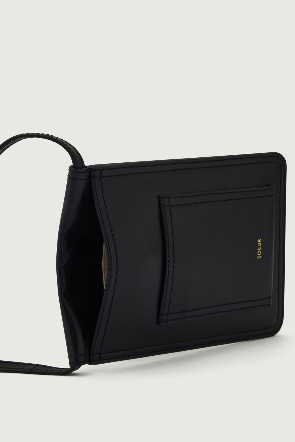 bolsillo baldy Pochetera plana de cuero liso con bandolera