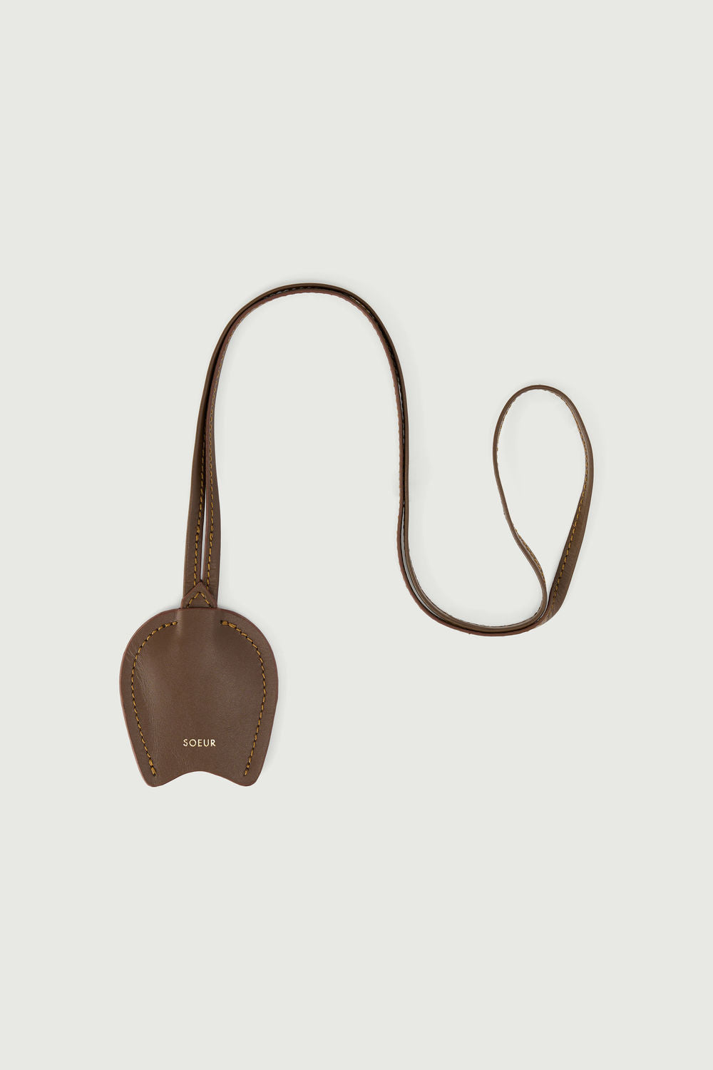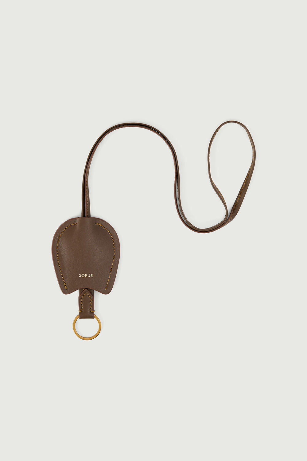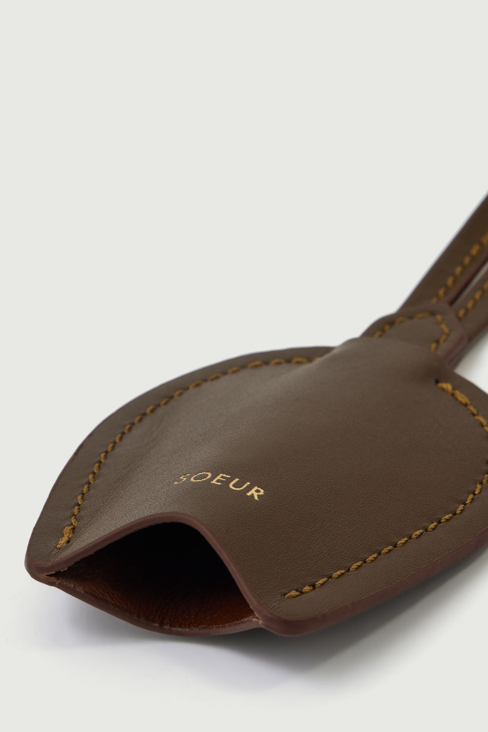 Llavero campanilla en cuero de vaca topo/coñac