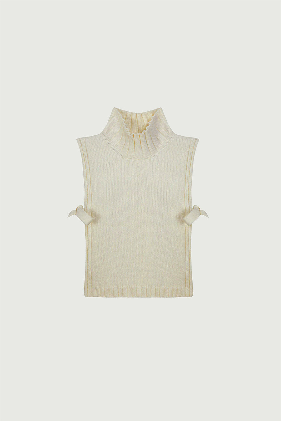 OR es un chaleco largo de lana, ajustable mediante dos cordones laterales que se pueden atar o dejar sueltos. El tejido, de punto compacto, le confiere cierta rigidez y un cuello alto bien recto. Aportará calidez a cualquier conjunto con estilo. Es práctico, ya que no limita el movimiento de los brazos.