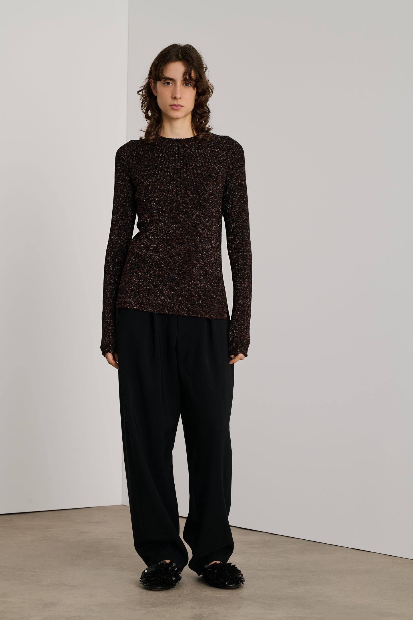 Jersey de canalé de manga larga en lúrex negro/caramelo