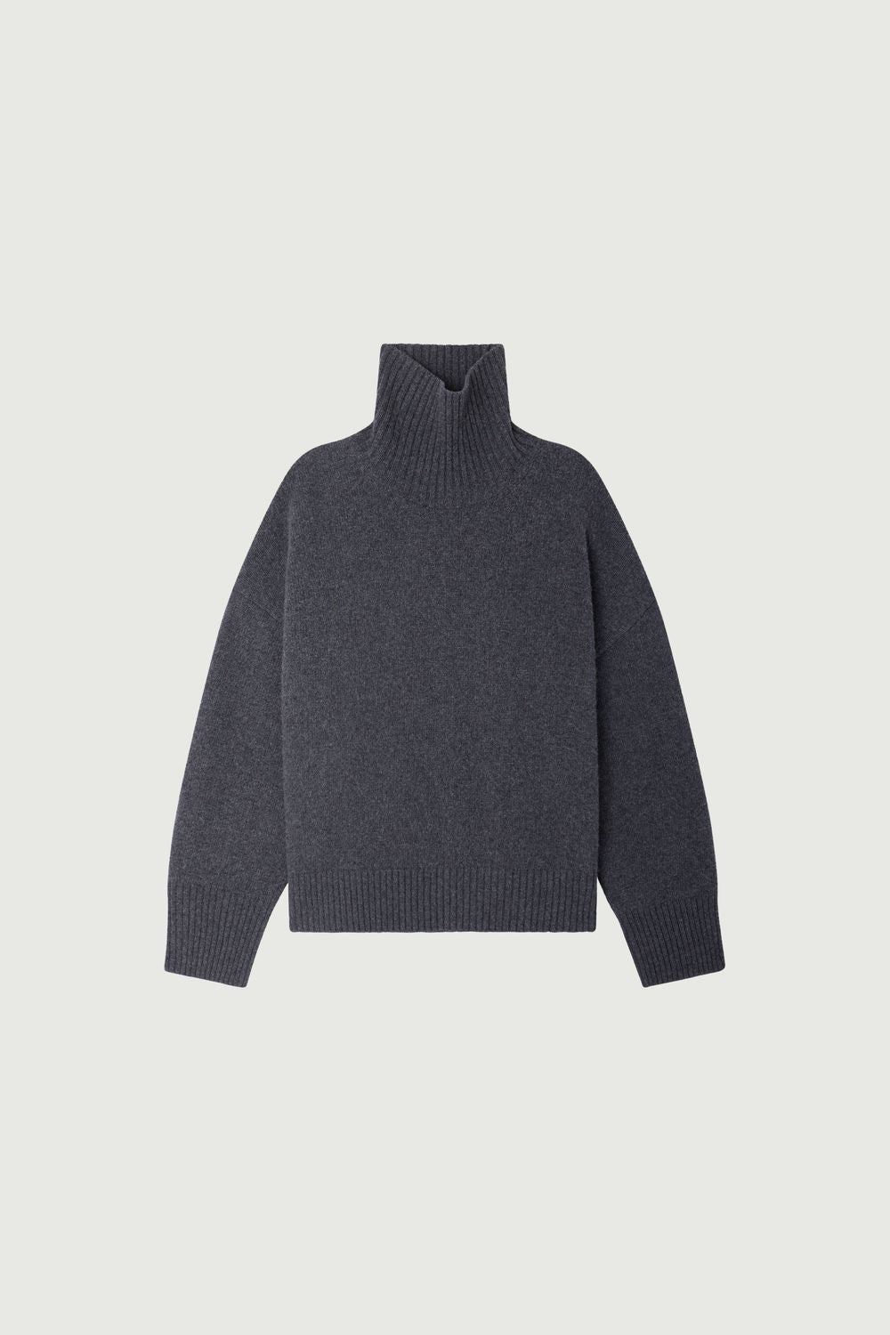 Jersey de cuello vuelto oversize en lana gris oscuro