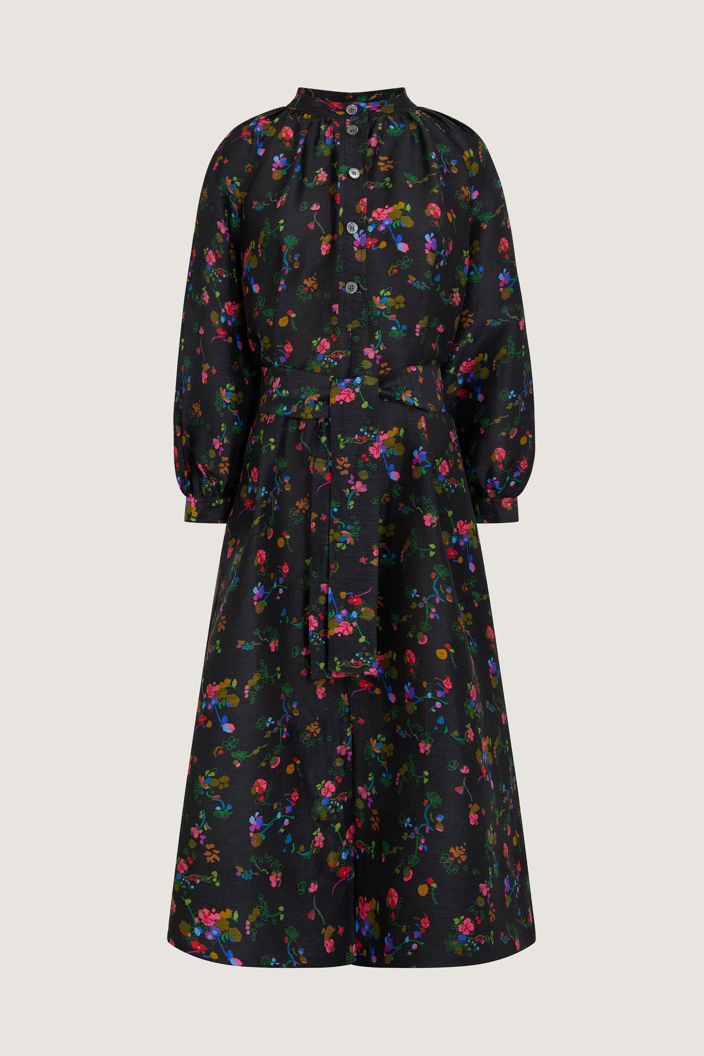 Vestido de seda y lino estampado multicolor estampado multicolor