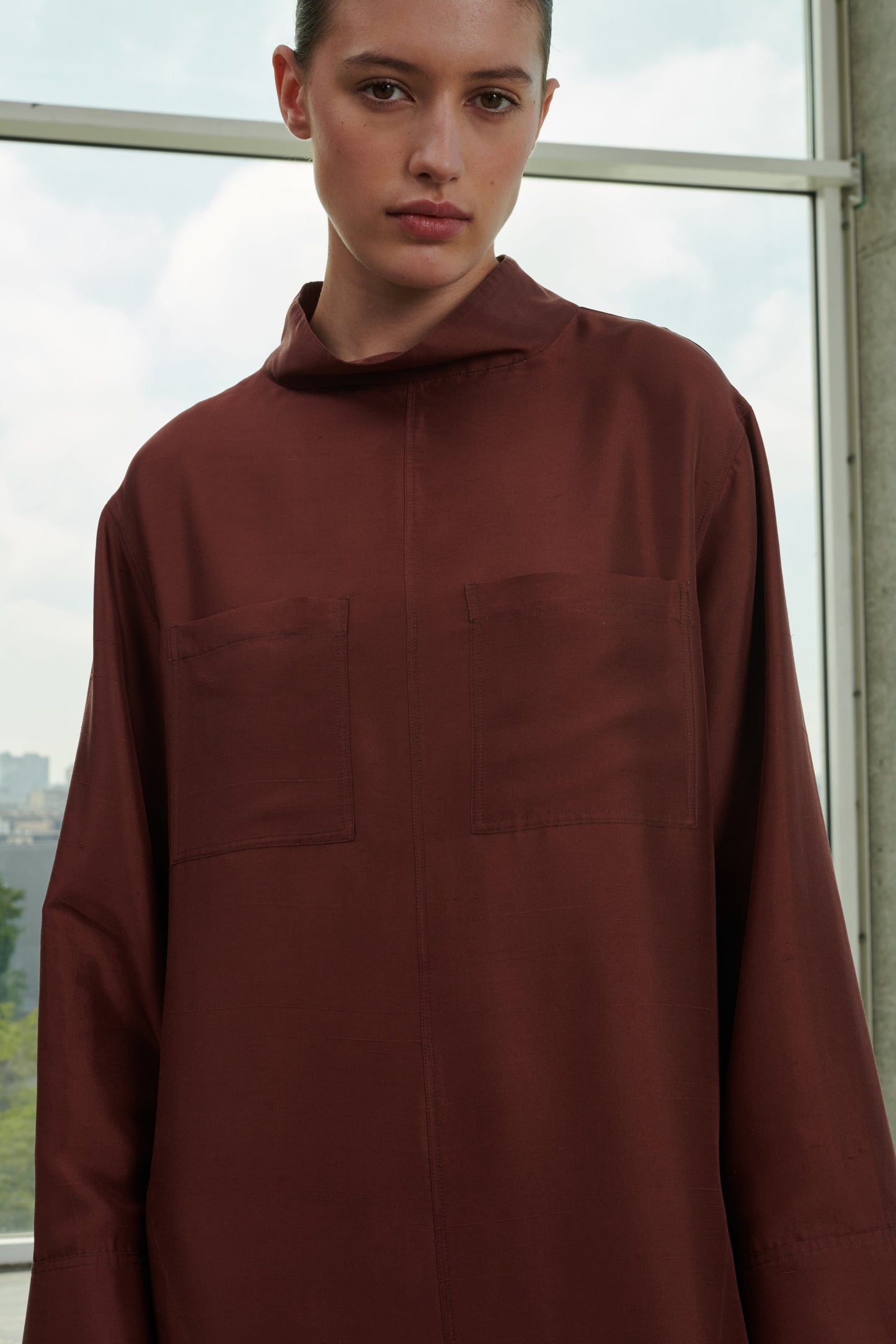 Vestido de cuello alto de seda de Dupioni