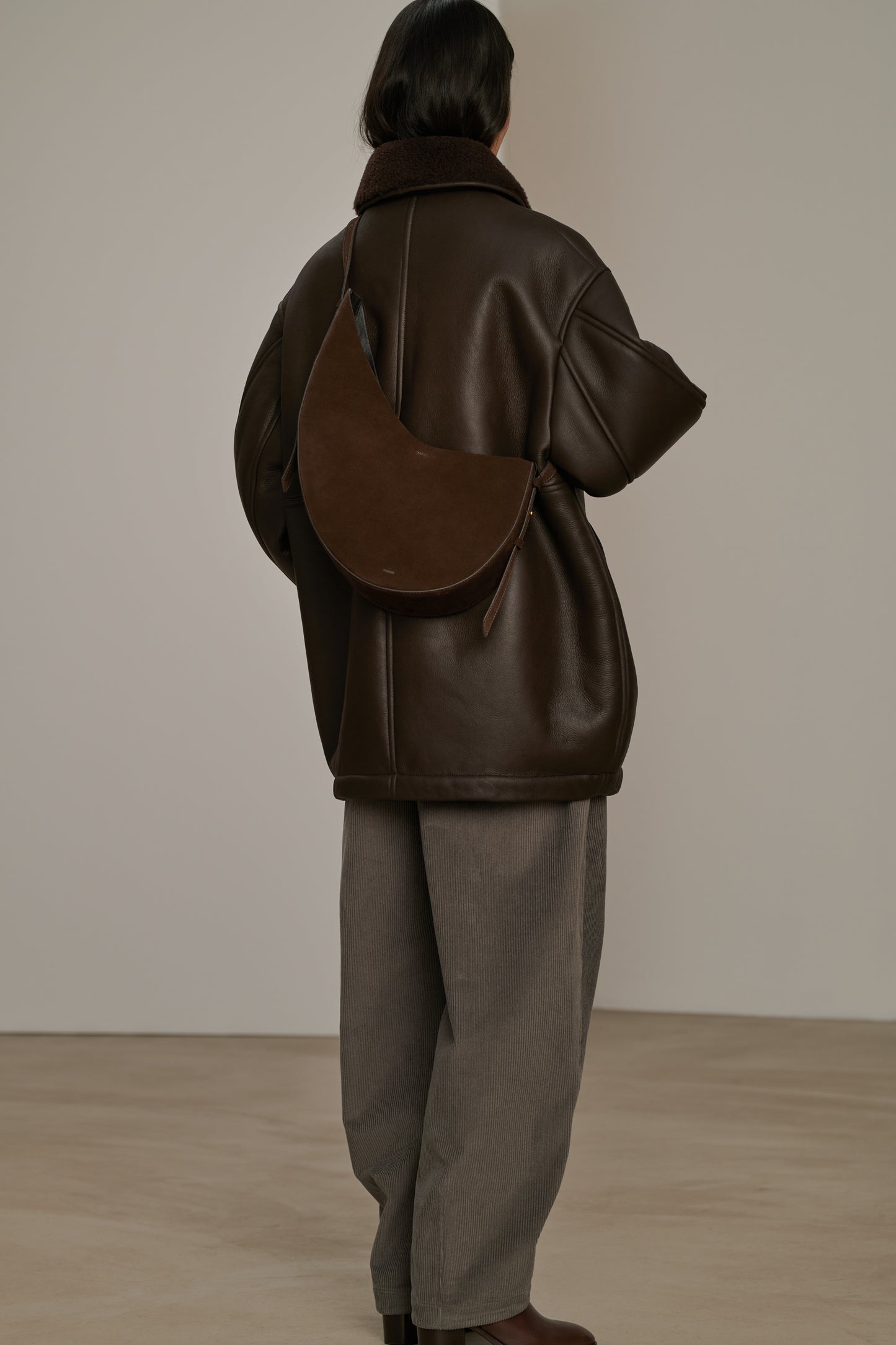 - Bolso de serraje marrón oscuro con bandolera