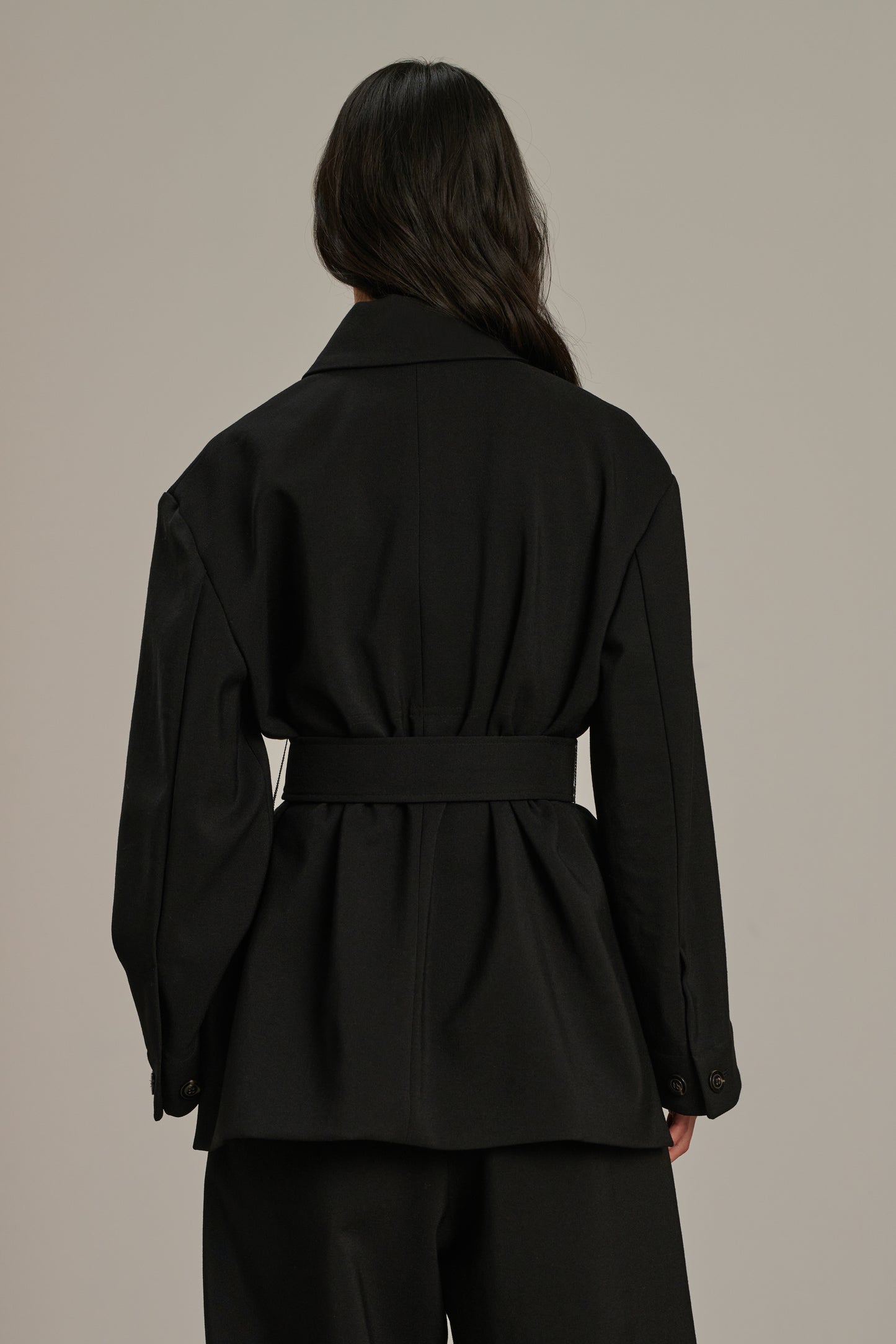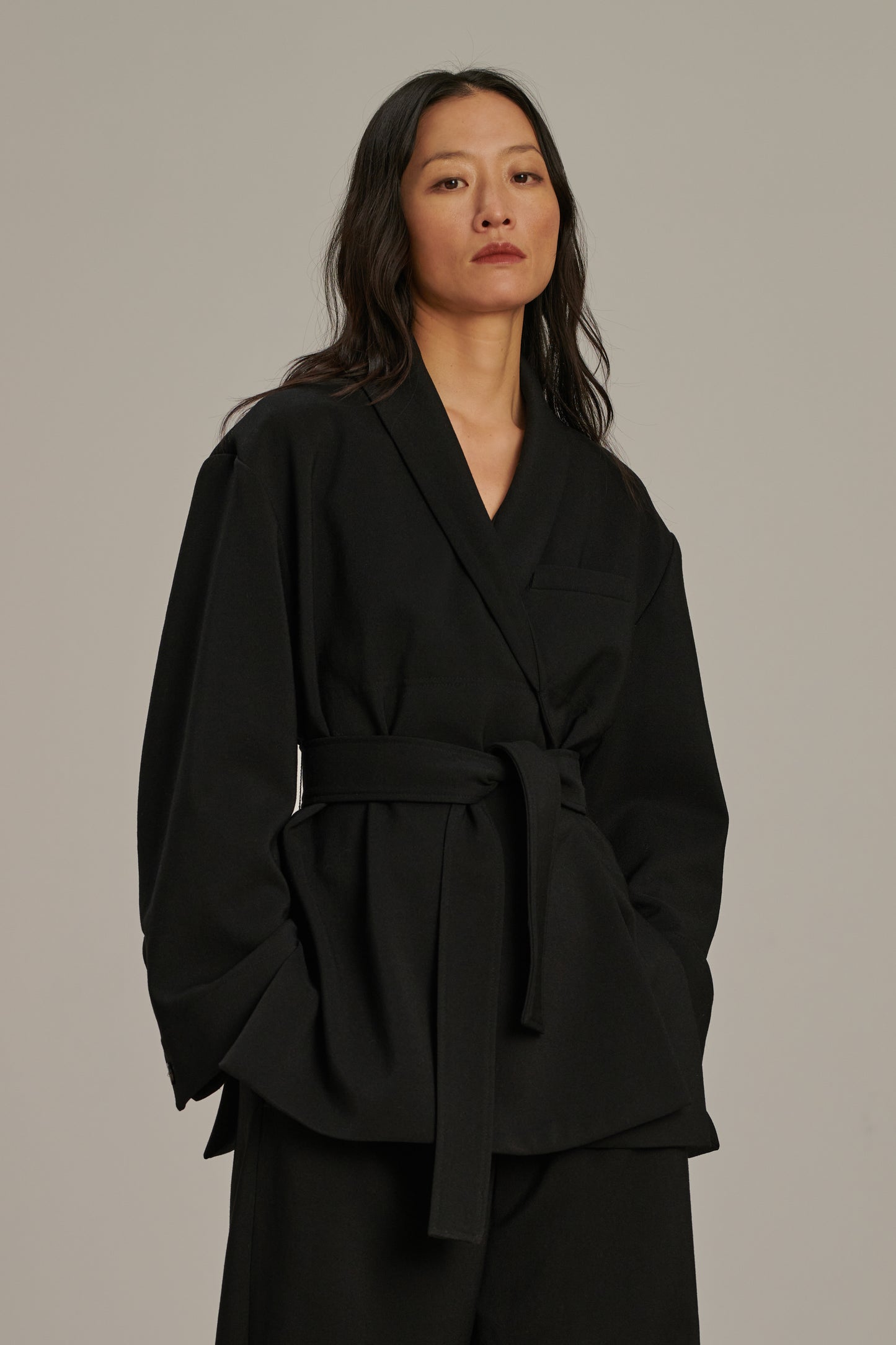 COME es una chaqueta en tejido de polvo ligero de un tipo novedoso. Con un corte tipo "bata" desenfadado, se realza por el uso de un tejido elegante.